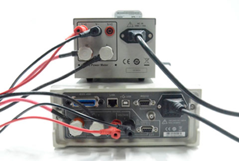 功耗的計量主要通過對用電回路的電壓及電流進行采樣,通過專業的儀器進行分析、計算。下圖為測試時的接線圖,艾德克斯IT-E185治具具有集成好的內部電路以及外接電壓和電流接線端子,直接用導線與IT9121功率表后面板電壓、電流輸入端子相連,省去了測試人員串并聯的操作,使用非常方便。