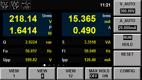 智能插座內部包含了AC-DC電源、無線通訊單元、繼電器及MCU控制單元等。因此,當進入待機狀態時,其內部的元器件開始工作,從而產生微小的工作電流。測試時,通過截屏功能把IT9121功率表的測試界面保存先來,進行數據分析。通過分析可以得出此款插座待機電流僅為15mA左右,待機功耗小于2W。不僅如此,發現在測量界面上還擁有功率因素、有功功率、頻率等參數,這對智能插座的其它項目的測試同樣有著巨大的幫助。