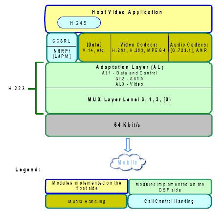中間層是H.223協(xié)議,負責的媒體混合表格的交換(Multiplex Table),H.223的處理一般是用硬件實現(xiàn),典型的硬件處理芯片是Ti的6xxx視頻處理器。