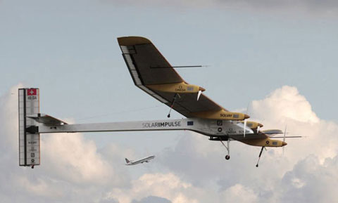 由瑞士著名探險家貝特朗·皮卡德率領的團隊研制的太陽能飛機——“陽光動力”5月13日早上在瑞士西部帕耶納的一個機場起飛,途徑法國和盧森堡,12小時59分鐘后抵達布魯塞爾扎芬特姆機場,順利完成了第一次飛出瑞士的洲際飛行。有報道說,接下來到5月底,該機將在布魯塞爾進行展示,目的是展示綠色能源高科技成就,然后飛往法國參加巴黎航展。