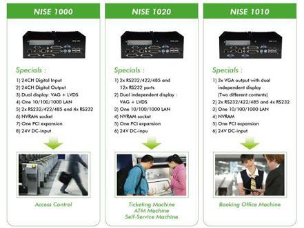 集成豐富的I/O接口, NISE 1000 系列是自動(dòng)售檢票系統(tǒng)的專用產(chǎn)品,閘機(jī),自動(dòng)售檢票機(jī),半自動(dòng)查詢機(jī)等。