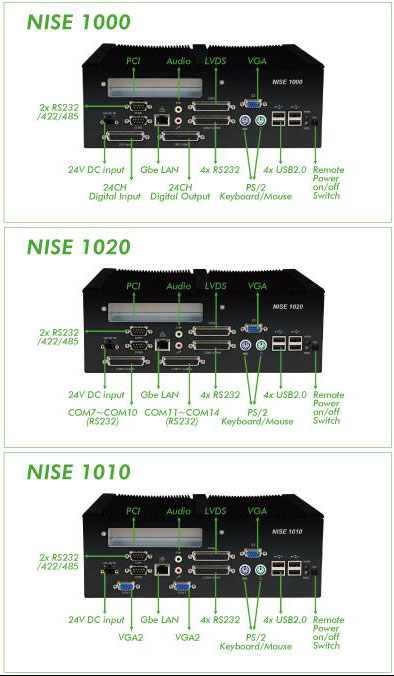 無(wú)風(fēng)扇設(shè)計(jì)的NISE 1000 系列是高可靠性能的行業(yè)專用產(chǎn)品,適用需求可靠性,穩(wěn)定性并長(zhǎng)時(shí)間作業(yè)環(huán)境。無(wú)風(fēng)扇全密閉的機(jī)構(gòu)設(shè)計(jì),機(jī)箱外殼象一個(gè)巨大的散熱器可以快速轉(zhuǎn)換系統(tǒng)熱量,確保惡劣苛刻環(huán)境下(如高低溫,潮濕,多粉塵)系統(tǒng)的穩(wěn)定運(yùn)行。主板I/O接口的一體化板載設(shè)計(jì),確保系統(tǒng)在振動(dòng)的環(huán)境中可靠運(yùn)行。采用高性能低功耗處理器,可應(yīng)因不同應(yīng)用而選用從Celeron® M 600 MHz 到 Pentium® M 1.8GHz CPU, NISE 1000 系列多達(dá)48路 DIO (24路數(shù)字量輸入和24路數(shù)字量輸出)與周邊傳感器連接,如閘機(jī)控制,14路串口便利連接周邊串口設(shè)備,例如自動(dòng)售票機(jī)和自動(dòng)售檢票機(jī)。同時(shí)配置的PCI/PC 104擴(kuò)展槽,增強(qiáng)系統(tǒng)的擴(kuò)展性,內(nèi)置板載的NVRAM確保計(jì)算機(jī)突然斷電時(shí)重要數(shù)據(jù)的不丟失。