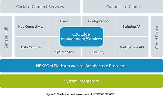 無需經(jīng)過復(fù)雜的設(shè)置和配置步驟就能幫助用戶整合云服務(wù),新漢連接到云是專為實(shí)施云服務(wù)而設(shè)計(jì),通過自助菜單導(dǎo)航一樣容易。新漢連接到云提供了內(nèi)置連接到主要的公共和私有云服務(wù)。檢查所需的云服務(wù),并確認(rèn)連接是可實(shí)現(xiàn)的。NEXC2C的核心架構(gòu)如圖1所示,圖2顯示了NEXC2C的內(nèi)置軟件棧。
