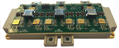 對于此航天級模塊,已選擇三相功率轉換器拓撲結構,同時,對于混合動力汽車(HEV)和鐵路項目,正在研究其他拓撲結構。在這個三相拓撲結構中,6個切換位置中的每個都包括一個100A SiC MOSFET晶體管和一個100A SiC肖特基續流二極管。這些器件可承受高達1200V的電壓,為540V航天直流總線提供足夠的防過壓冗余,而且此模塊在設計上可輕松使用1700V/150A SiC器件進行升級。晶體管的典型導通電阻為12.5mΩ或8.5mΩ,取決于其額定電流是100A還是150A。