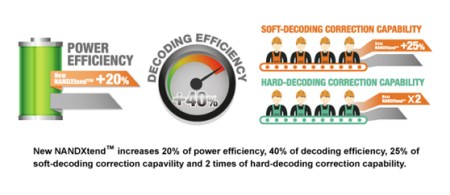 圖:較新NANDXtend技術,可以提高20%的電力效能、40%的解碼效率、25%的軟解碼校正能力、以及2倍的硬解碼校正效能。