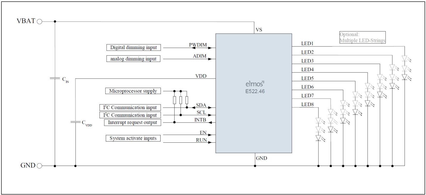 —E522.46---8路高邊線性恒流LED驅(qū)動(dòng)器簡(jiǎn)潔靈活的系統(tǒng)配置