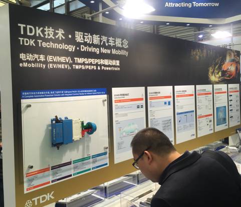 在慕尼黑上海電子,TDK集團以“科技吸引未來”為主題,展示了信息通信技術(尤其是智能手機、物聯網和可穿載無線電子設備);針對汽車電子領域,TDK集團展出了與引擎管理、TMPS/PEPS以及電動交通(包括EV、HEV及PHEV)的電子元件解決方案。工業機械人管理、驅動及牽引、工業電源、風能和太陽能以及能源傳輸和傳送用的電子元件及其解決方案,如為下一代技術而創新的電容器、電感、SESUB藍牙模塊,MEMS及EMC元件,電子保護元件等產品。各展示區域的產品專家向媒體介紹了重點產品,并進行了新產品演示。