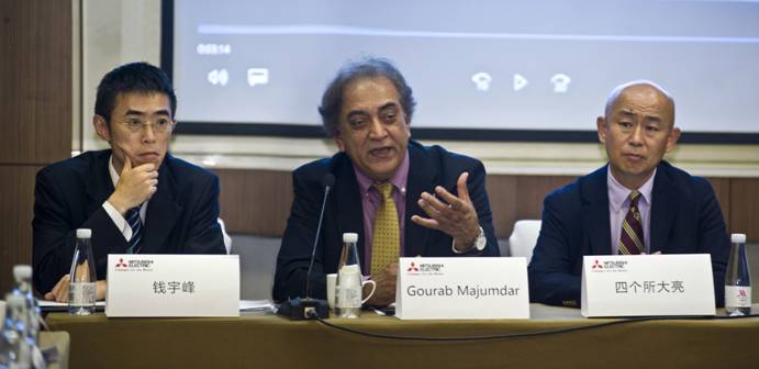 Majumdar博士稱自從在1996年推出DIPIPMTM后,累計出貨量已超過5億顆,右為三菱電機半導體大中國區總經理四個所大亮先生,左為三菱電機半導體大中國區市場總監錢宇峰先生。