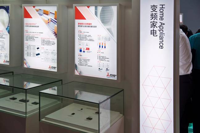 在今年的PCIM亞洲展中,三菱電機展出一款已經量產,特別適合變頻家電的全碳化硅超小型產品DIPIPMTM,其二極管及MOSFET均采用碳化硅,減少損耗及噪聲,令效率更高。它與市場上廣泛應用的超小型的DIPIPMTM封裝相同,可采用同樣的電路板,額定電流覆蓋15A、25A/600V,配備集成短路保護、欠壓保護及溫度模擬量輸出。