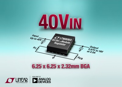 照片說明:40VIN、2.5A μModule 穩壓器僅需 4 個外部組件