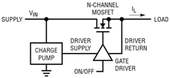 圖 2:用 N 溝道 MOSFET 實現電源軌的接通/斷開
