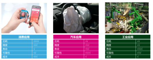 Onetti認為,第四次工業革命和2025智能制造的核心都是智能制造。要達到智能制造,無非是要讓機器更加智能,不僅要智能地知道所處環境和現在的工作狀態,還要有自我診斷、自我修復能力。他以加速計應用為例對比了消費應用和汽車應用和工業應用的需求。