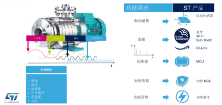 他解釋說,工業應用需要條件監測,例如馬達檢測,檢測到的速度、加速度、噪音、角速度、力矩、電流、電壓等信息通過傳輸給后臺的云作數據處理。如果24小時一直在傳輸數據,也會產生很大的數據流量。而后臺的云一直在做滿負荷的計算,也有很大的成本。這是既有方法,采集原始數據,對大數據進行大容量存儲和數據處理。而ST 的新方法在于傳感器融合或有適應能力的傳感器陣列,將不同類別的信息通過幾個傳感器進行本地采集,然后在本地的模塊里面進行信號處理,即預處理和告警,然后才是智能和少量數據處理。這就是ST產品的優勢所在。
