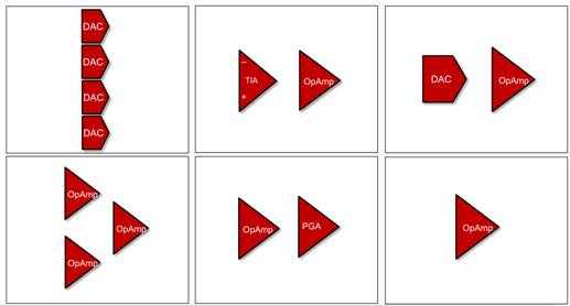 MCU,工程師可以更靈活地進行系統設計。它集成了四個智能模擬組合模塊——可配置的信號鏈元件,其中包括多個12位數模轉換器(DAC)和可編程增益放大器,以及一個12位模數轉換器(ADC)和兩個增強型比較器。用戶可以在任意配置中使用1、2、3 或全部4 個智能模擬組合模塊,以滿足應用需求。