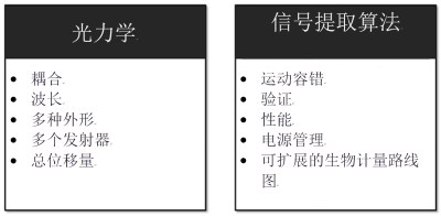 • 光力學耦合 - 在傳感器與人體之間是否能夠高效進行雙向光導與耦合?使血流信號較大化和向傳感器施加噪音的環(huán)境噪音(如日光)較小化,是其中的關鍵。