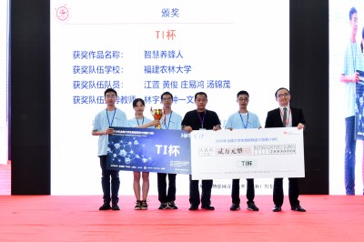 2018 TI杯物聯(lián)網(wǎng)設(shè)計(jì)競(jìng)賽吸引了國(guó)內(nèi)近500所高校的1,944支隊(duì)伍參加,報(bào)名教師和學(xué)生的人數(shù)超過(guò)10,000人。經(jīng)過(guò)層層遴選,共有108支參賽隊(duì)進(jìn)入全國(guó)總決賽。較終,來(lái)自福建農(nóng)林大學(xué)的代表隊(duì)在賽況激烈的十二強(qiáng)爭(zhēng)霸賽及全國(guó)總決賽中脫穎而出,憑借“智慧養(yǎng)蜂人”作品榮獲本屆特等獎(jiǎng)TI杯,該設(shè)計(jì)大膽借鑒工業(yè)4.0無(wú)人工廠的想法,打造無(wú)人蜂場(chǎng)的全新概念,以德州儀器CC2530、 BQ24230作為技術(shù)核心,運(yùn)用物聯(lián)網(wǎng)科技實(shí)現(xiàn)無(wú)人蜂場(chǎng)的生產(chǎn)自動(dòng)控制,包含了“蜂箱集群控制器”、“智慧蜂箱”、“放蜂人手機(jī)APP”、“云端養(yǎng)蜂平臺(tái)”等軟硬件模塊,在投入廣泛應(yīng)用后能實(shí)現(xiàn)科學(xué)養(yǎng)蜂。