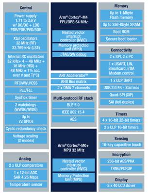 通過整合性能更高的Cortex-M4內(nèi)核與Cortex-M0+網(wǎng)絡(luò)處理器,新一代STM32WB利用意法半導(dǎo)體的超低功耗微控制器(MCU)技術(shù)集成優(yōu)異的射頻性能和更長的電池續(xù)航時(shí)間。該系統(tǒng)芯片還集成連接天線所需的基本電路(巴倫),在其它解決方案中,通常工程師必須自己設(shè)計(jì)巴倫;還集成大容量的系統(tǒng)存儲(chǔ)器、用戶存儲(chǔ)器、硬件加密、客戶密鑰存儲(chǔ)器(用于品牌和知識(shí)產(chǎn)權(quán)保護(hù))。