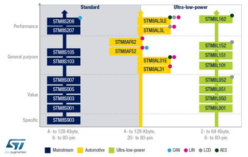 他說,每個產品系列里都有不同產品的分類,STM8系列中的8L、8S、8A面向不同的應用需求。舉例來說,高端的手表和一些低端的無線充電器對MCU的需求是不一樣的。為了滿足客戶,ST能夠提供不同的功能以及不同成本的產品,所以每個產品線都分成高性能產品線、通用產品線,還有超值型產品線,每個產品都針對更加細分的市場。