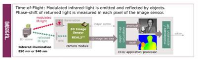 他介紹說,REAL3™是英飛凌基于飛行時間開發的3D圖像傳感器系列,由高度集成的單芯片成像器組成,采用ToF優化CMOS工藝制造。它可以利用飛行時間(ToF)相機測量3D環境。ToF技術具有抗太陽光干擾性能強、可擴展性強等特點,可集成到眾多消費類電子、汽車和工業應用中,提供準確和可靠的深度數據。