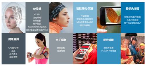 在光學傳感器方面,艾邁斯有兩大產品線,一是集成光學傳感器,主要是用于顯示強度的管理,還有攝像頭、色彩的平衡,以及家庭助理方面的應用。第二個產品線是顏色和光譜傳感,主要用于比較新的應用,像顏色識別,通過光譜傳感器可以精確地檢測顏色,公司跟一些化妝品公司合作,通過精確的產品、顏色的檢測可以直接去網站上購買稱心的產品。在食物分析方面,可以檢測蘋果的甜度、巧克力的成分,幫助消費者檢測食物的安全和品質。