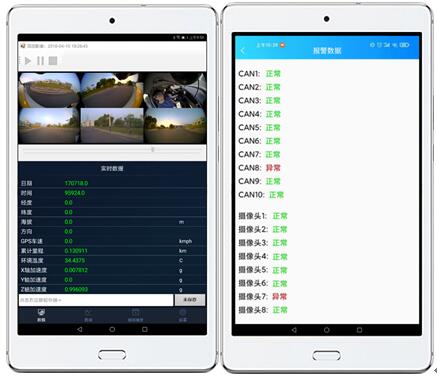 APP軟件用Android手機或者平板與智能網聯數據采集終端近場連接,實現實時數據、視頻的本地展示,實時監控CAN總線配置/連接、視頻接入狀態并可視化預警,保障試驗數據的完整性。