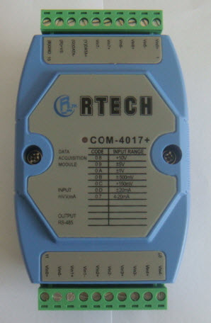 該模塊為8路模擬量輸入模塊,各通道可單獨(dú)配置,可采集±150mV,±500mV,±1V,±5V,±10V,±20mA,4-20mA標(biāo)準(zhǔn)信號(hào),有效分辨率為16位, 3000VDC電壓隔離。