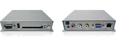 該產品集成多種輸入和輸出接口,如VGAcompositeA/V,S-Video(可選),COM, USB,10/100以太網和 CF 存儲。PDS 1100可以選擇多種顯示設備作為多媒體內容播放,并可以預先設定不同格式的內容,播放日期和時間。PDS 1100 數字多媒體播放平臺預裝軟件,使用戶可以輕松進行播放、時間安排和確定播放時間表,通過有線網絡或無線網絡遠程加載多媒體演示到播放器。